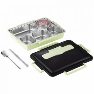 Big Five Grid 304 Stainless Steel Lunch Box with Cover and Buckle, Chinese and Korean Style, Fashionable, Safe, and Convenient for Students
